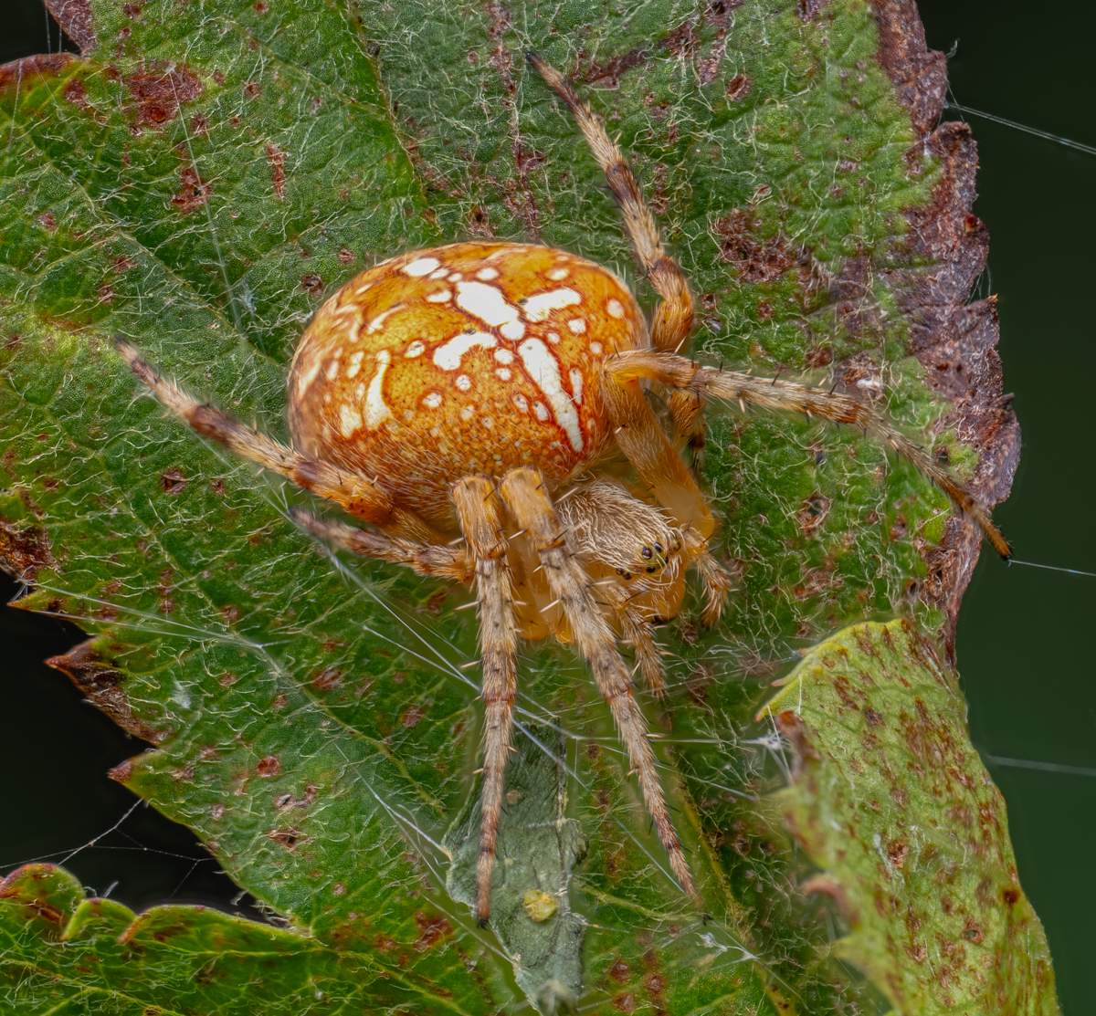 This is a stack of about 30 images, showing convincingly why they are called a Cross Orb Weaver.