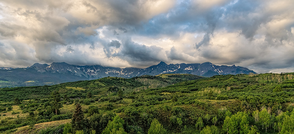 The color was not great at sunrise, but shortly after the sun started hitting the clouds and giving a nice soft gold tone to a lot of the clouds. It made for a very pleasant morning. This is from Dallas Divide in Colorado, from a week ago.