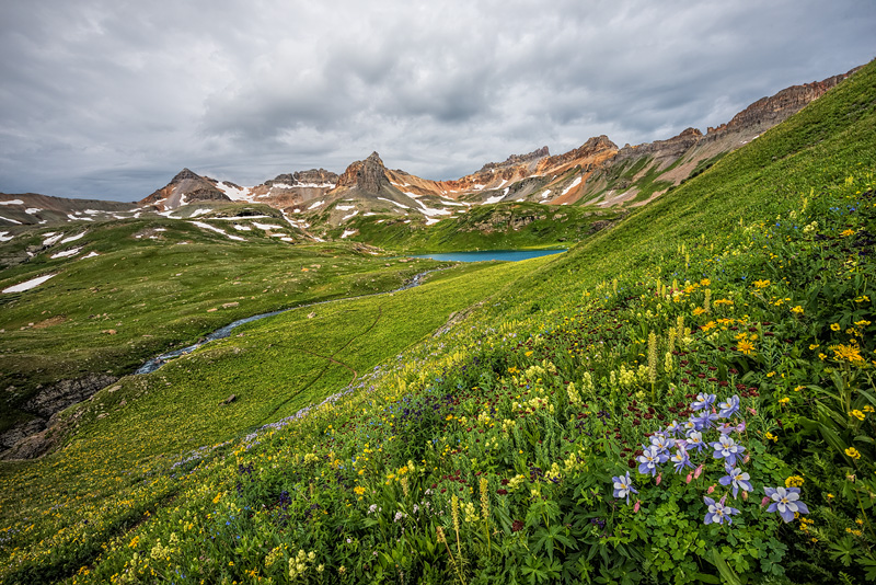 Ice Lakes Basin has a series of high altitude lakes in the San Juan Mountains in Colorado.