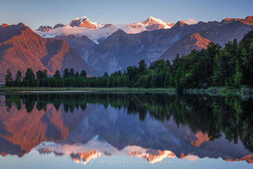 This was taken at sunset at Lake Matheson, known for its beautiful reflections of Mount Cook/Aoraki and Mount Tasman. It is a pretty cool hike around the lake and this small platform definitely becomes jam packed with tripods starting about an hour before sunset.