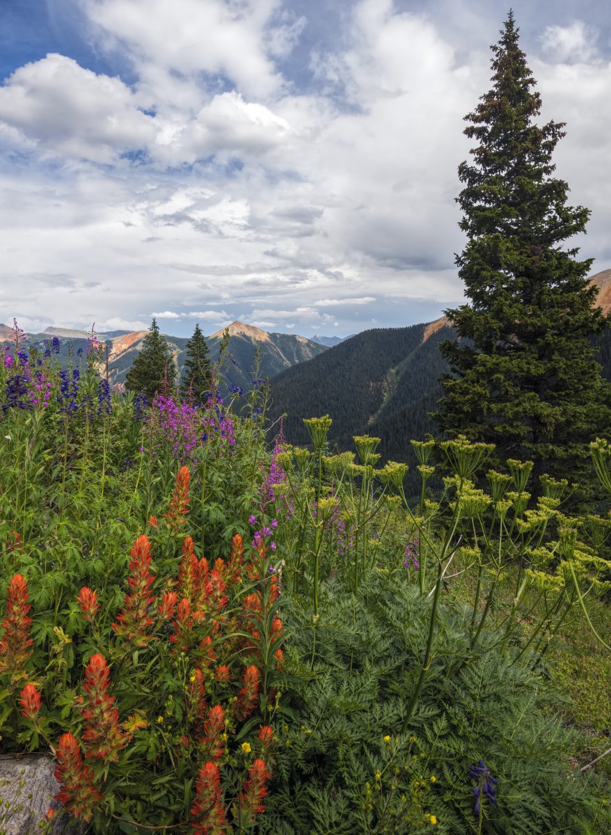 I agree with Ben that you did a good job in not cutting off that tree. I would crop this though to remove that rock in the lower left corner. Being as it's the only rock in a field of flowers the eyes are going to get distracted by it. So crop this just a bit and I was say this is great!
