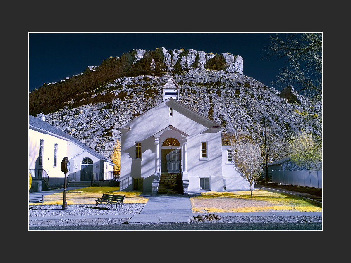 I like that. I hadn't realized how it lined up with that butte in the background so nicely. With that park bend and that old clock, there is a lot of composition ideas there. I like this one you chose.