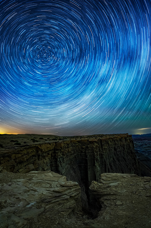 Yeah, I don't go out of my way to shoot star trails, but maybe because back in the old days with film, star trails were all we could do so it's always in the back of my mind. So as I am shooting with Ben and mapping things out for the night, I also will look to the north from where we are shooting to see if the foreground is conducive to compliment shooting with the star trails. And so I saw this crack and how it pointed north and thought it would be cool.