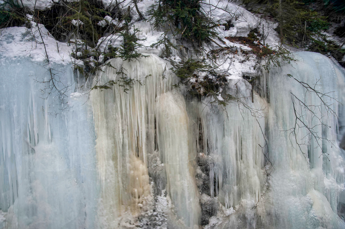 OK.. I did find one landscape photo taken in March. These falls are only visible from the VIA rail train as it travels through the Rockies.