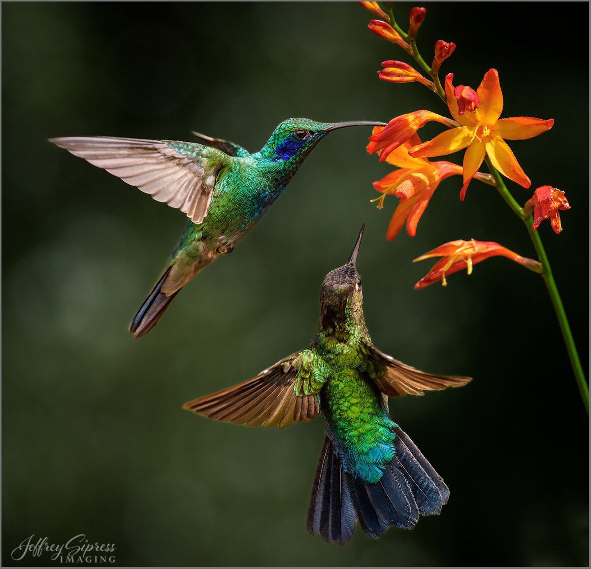 Photographed in the Ecuadorian cloud forest, these two tropical gems shared a single vertical perch for all of three seconds.