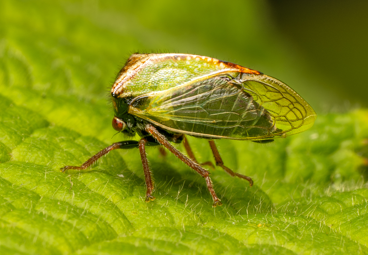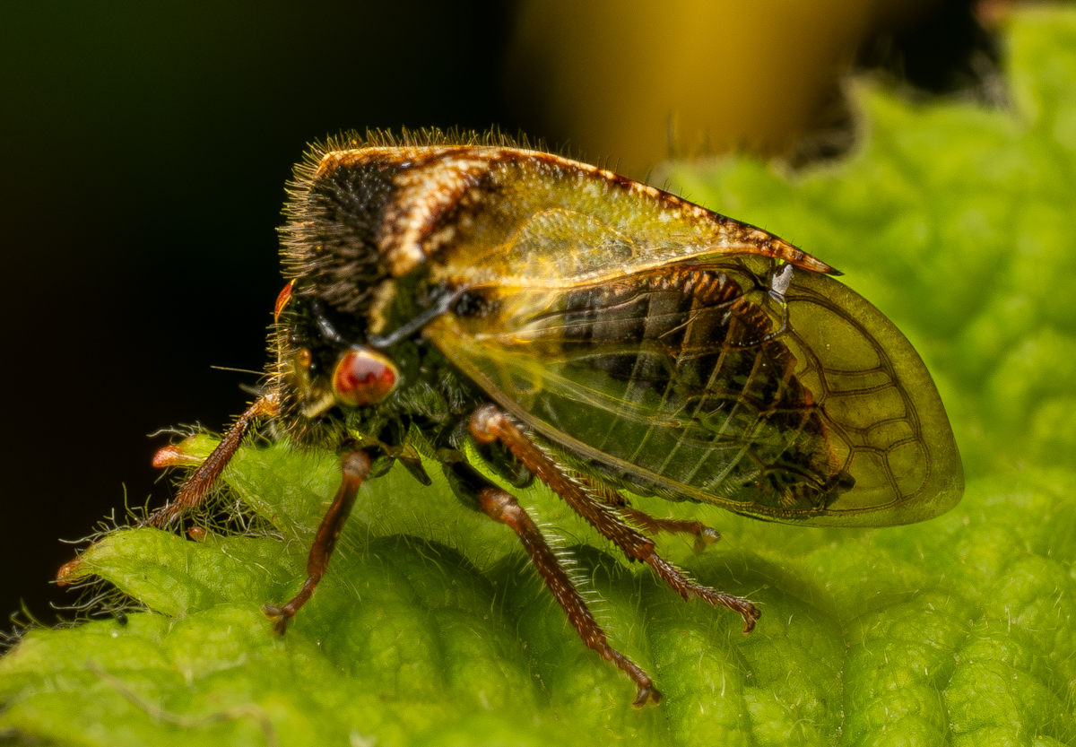 It was a different shape and when I process the images this red-eyed wonder showed up. It is one of the Buffalo Treehoppers (Stictocephala basalis).