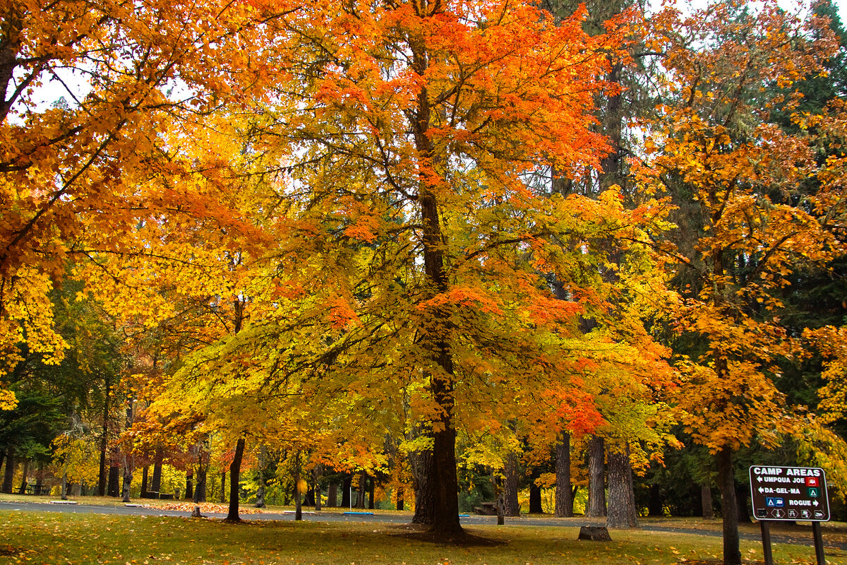 On a vivit to Grants Pass OR a few years age, he suggested that we visit Indian Mary's Park just north of the town. We drove into the park and were blown away by all the fall colors. My battery was dead after 2 shots and Kathleen was fully charged and readyu to go. This is one of her shots from that day and gives a sense of the magnificent color display!
