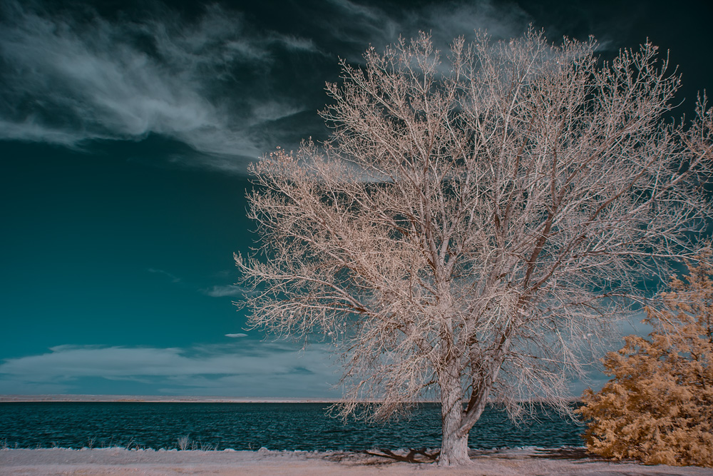 Here is one from last Sunday. I made a return trip to Jackson Lake, this time with 6 of the grandkids and my daughter. This time I didn't see many Bald Eagles, but we did get to make smores out there and then I wandered around a bit and found this tree. I liked the smaller supporting tree and then the way the clouds were flowing.