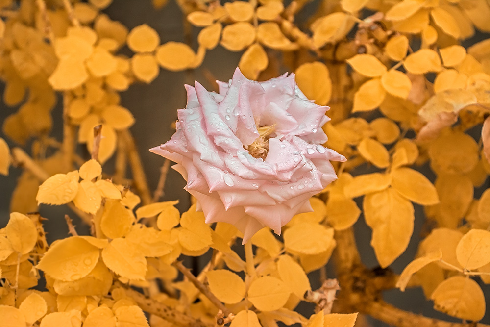 Nice series Jim. IR has its own realism so there are no reference points in the world of visible light. That said there apparently are blue roses (Blue rose - Wikipedia ). But there are no yellow leaves on the plant with pink roses that I am aware of:)