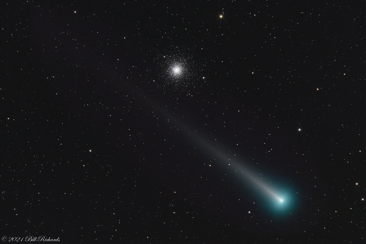 We have another comet - Leonard. This one's not as bright as NEOWISE, but I managed to capture it as it passed in front of M3 (a large Globular Cluster consisting of about 500,000 stars, 32,600 light years from Earth). The last time Comet Leonard passed by us was 70,000 years ago. It will be brightest 1-2 hours before dawn in the eastern sky on Dec 12th, then get increasingly closer to the sun as Christmas approaches. And this time around, its orbit will cause it to be flung out of our solar system forever so it will never be seen again.