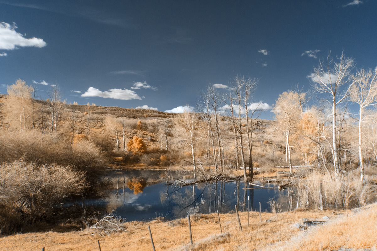When shooting in IR with a smaller mm lens (ie. this example 16mm-55mm @ 19mm) it is common to get Hot Spots in your image, causing a discoloration and lack of detail. But in most cases they are easy to correct in post processing.