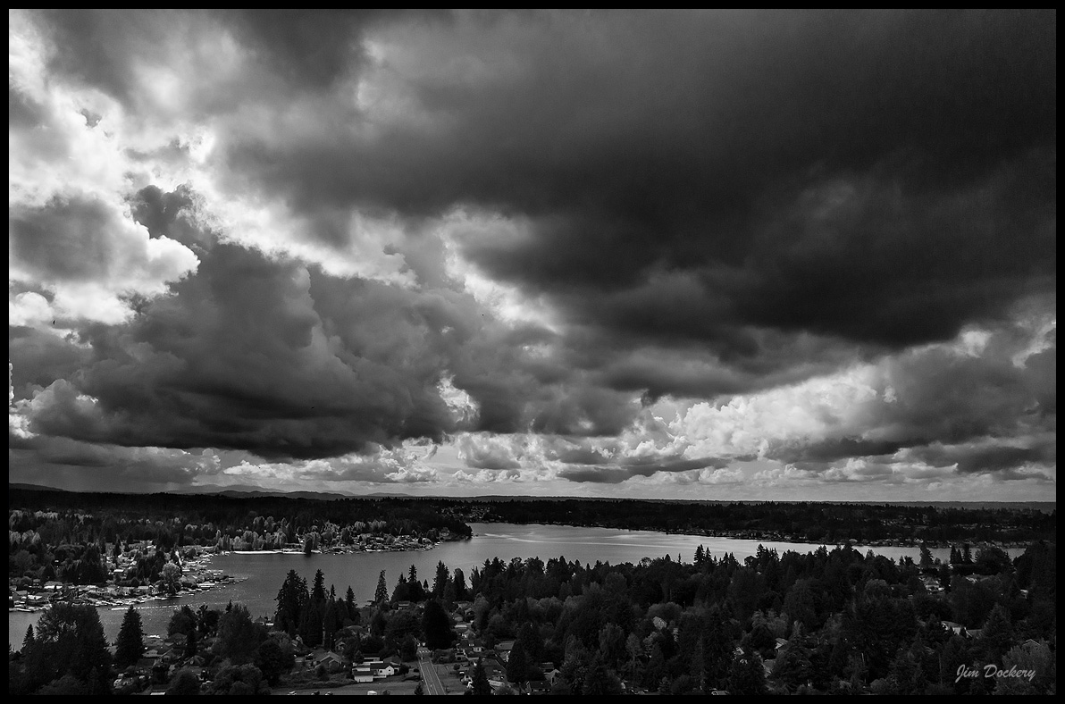I haven't had much luck shooting hyper lapses on my Mavic 2 Pro (DJI's term for time-lapse mode on their devices). I've been trying to capture moving clouds, which of course means there is some wind, which means the drone has to adjust itself and can't maintain a perfect position. I tried a couple this week with predictable throw away video results, but then played with a couple of the RAW images that were also saved and got this.