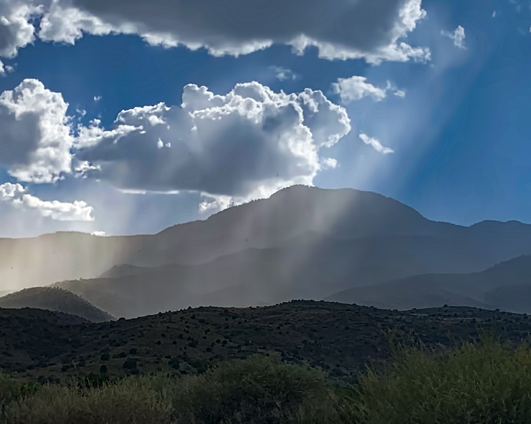 We are getting close to the end of monsoon season here in Arizona. Storms are typically scattered and can result in very pretty skies with dappled landscapes, crepuscular rays, and isolated rainfall. Here are two relatively recent events.