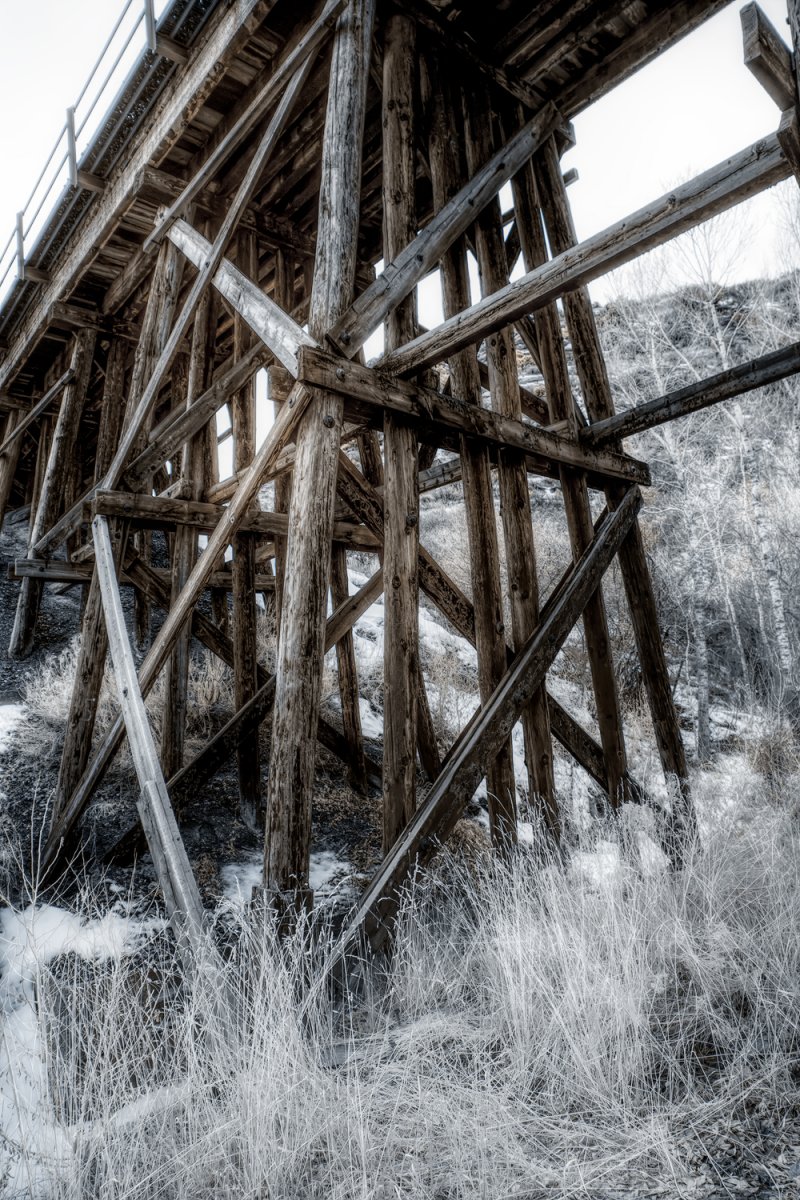 Yesterday I just needed to get out of the house for a while and take a breather. It wasn't a good day to be out shooting at all, the lighting was terrible and everything looked very dingy, but I did take my IR camera with me just in case. I came across this Railroad bridge trestle and thought it was interesting, mainly because of the construction and the fact that trains travel across it every day pull multiple rail cars loaded with coal. This has gone on for many years, unfortunately less frequently now.
