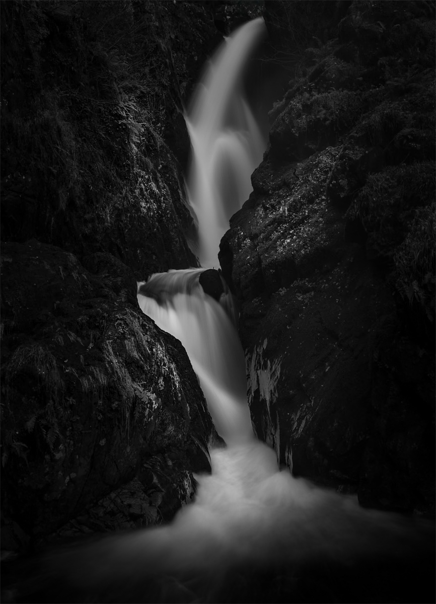 Aira Force last Thursday. The colour version is handheld from narrow metal steps bolted to the canyon walls. The mono version is shot from the metal platform and is a much longer exposure time than my usual but I liked the simplicity. Ken