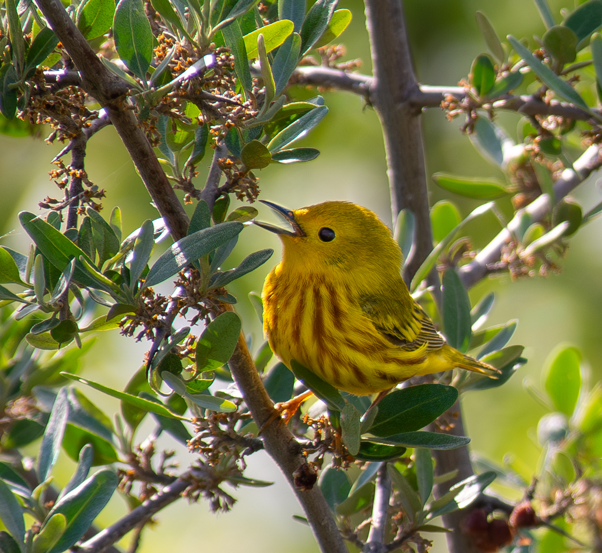 Bright yellow and singing like it just discovered volume.